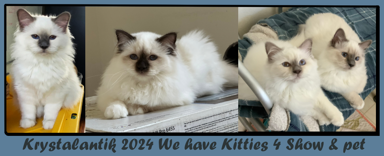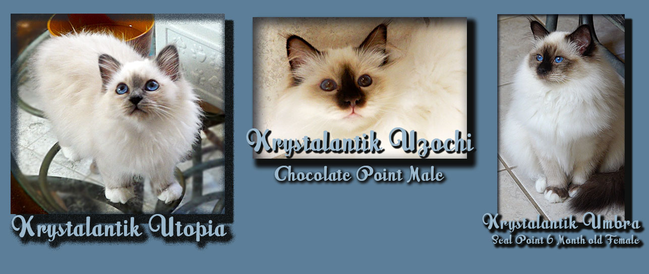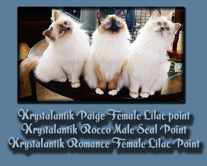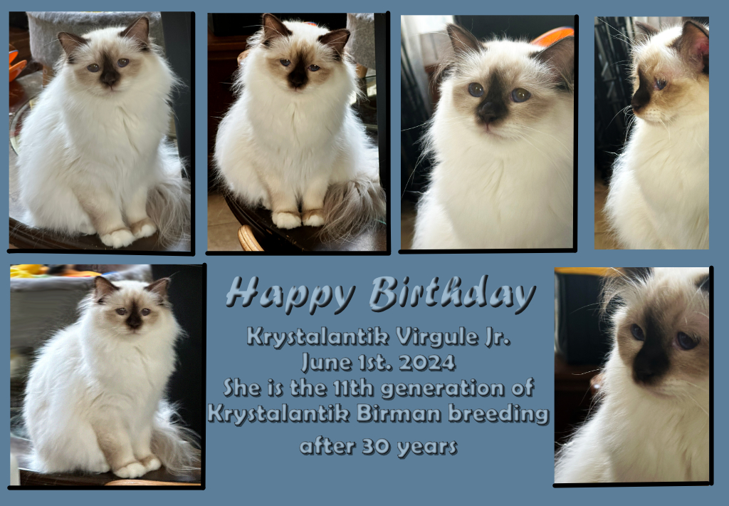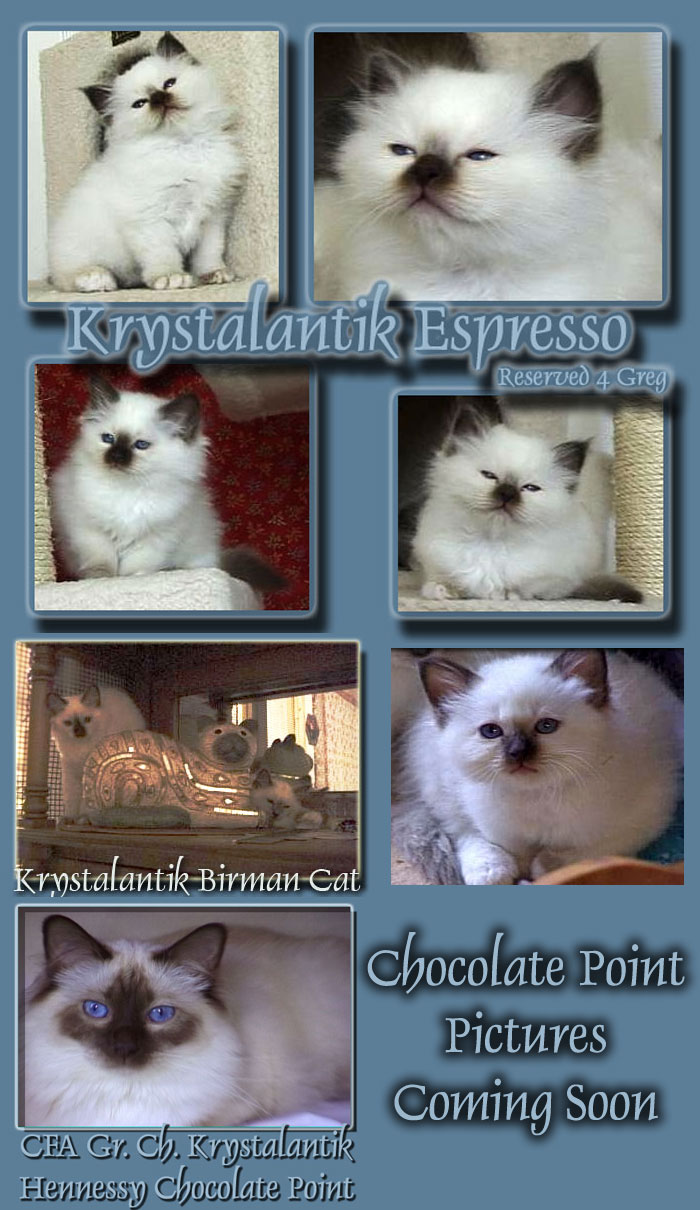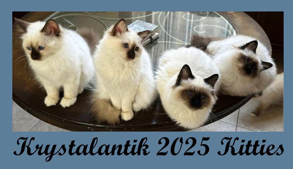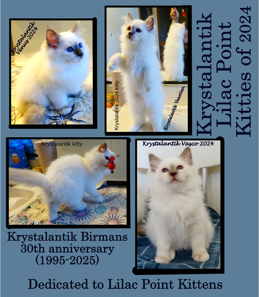We breed only the following color of Birman: Seal, Blue, Chocolate, and Lilac Point. Krystalantik Birmans' 30th Anniversary of Breeding (1995-2025)